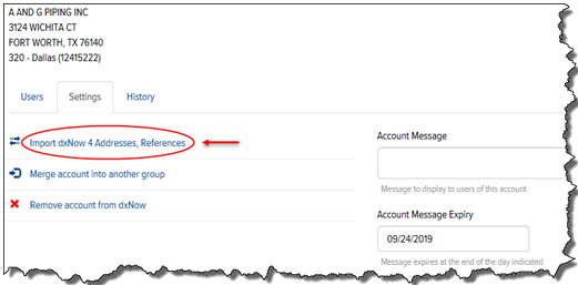 Click the Import dxNow 4 Addresses, References link, as shown: