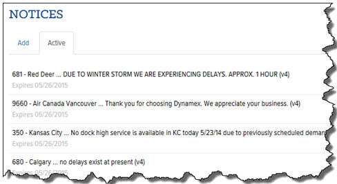 Click Submit. The Notice is displayed on the Active tab, as shown: