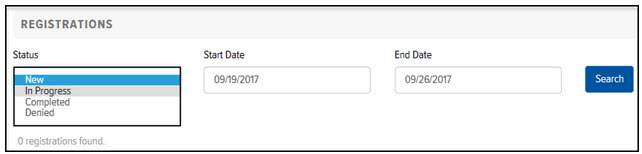 On the Registrations page, in the Status field, click the drop-down arrow and select one of the following options: