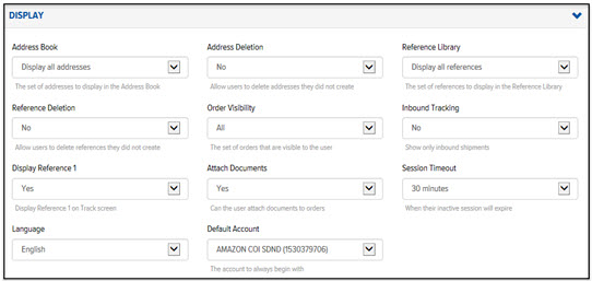 On the Users page, on the Settings tab, click Display. The Display section displays, as shown: