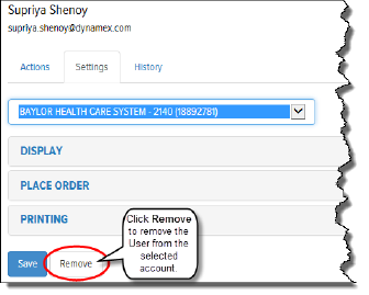 The User is removed from the selected account, but not from the Final Mile Track system. A confirmation window displays.