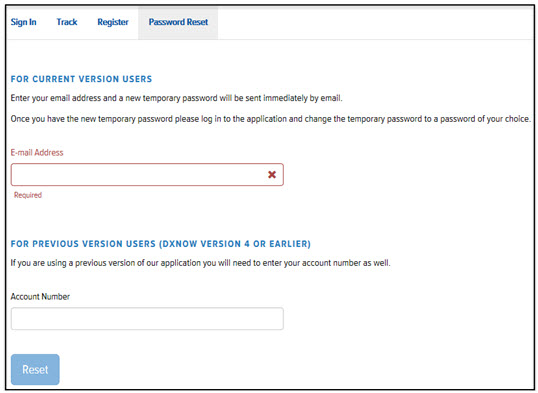 For dxNow Version 4 (or earlier) Users, in the Account Number field, enter your Account Number.
