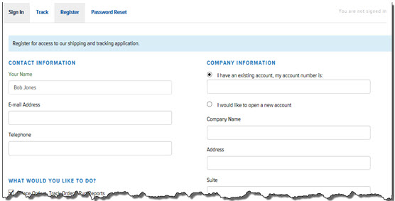 Complete the fields in the Contact Information, Company Information, and What Would You Like to Do sections.