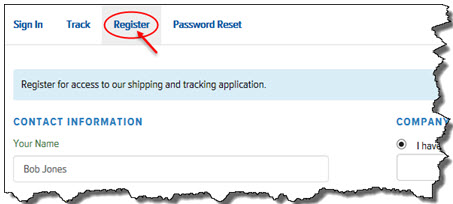 The Register page appears, as shown: