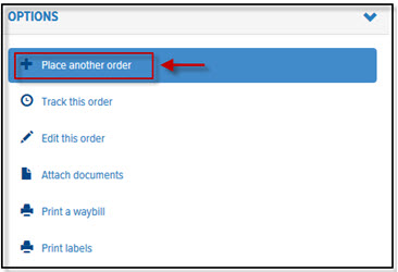 · On the Confirmation page, in the Options section, click the Place Another Order link, as shown: