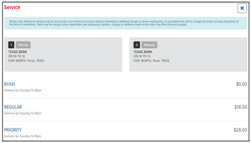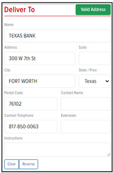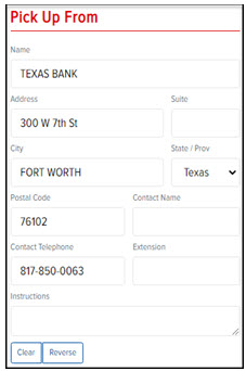 Note: If you want to swap all of the information in the Deliver To section with the information in the Pick Up From section, click Reverse.