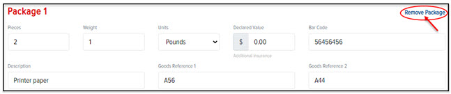 To remove a package from the order, click the Remove Package link, as shown: