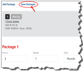 In the Package 1 section, in the Pieces field, type the number of pieces in the order.