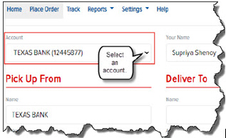 · On the Place Order page, in the Account field, click the drop-down arrow and select the account for which you want to place an order, as shown: