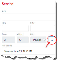 Note: On the Place Order page, in the Service section, the Pieces, Weight, and Units fields are automatically populated and reflect the total pieces, weight, and units defined for the order.