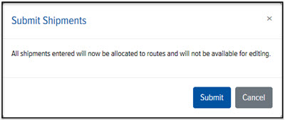 Note: You cannot edit a shipment after you have submitted it. Routes are created based on the customer’s postal code/zip code setting in Route Assignment (DECS Administration > Main Menu > Distribution Menu > Route Assignment).