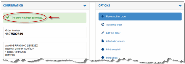 A Confirmation page displays, as shown: