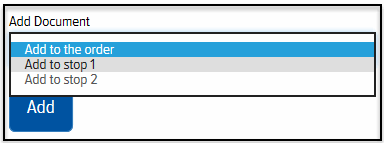 In the Add Document field, click the drop-down arrow and select Add to the order if you want to attach the document to the entire order. Or, select Add to Stop X to attach the document to a specific stop, as shown: