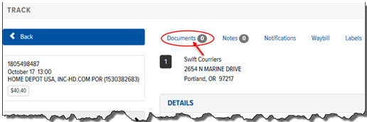 On the Order Detail page, click the Documents link, as shown below: