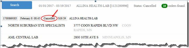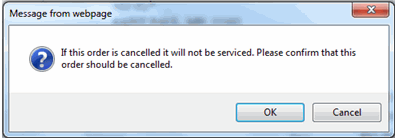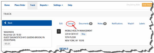 The order is removed from the Track Orders list. All stops within the order are cancelled. The appointments that are attached to the stops on the order are also cancelled. The order’s status displays “Cancelled,” as shown: