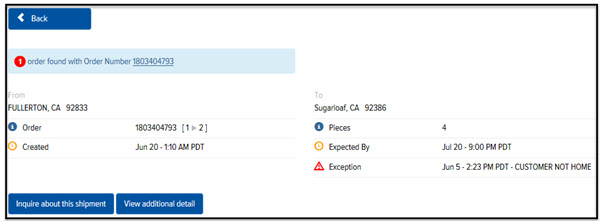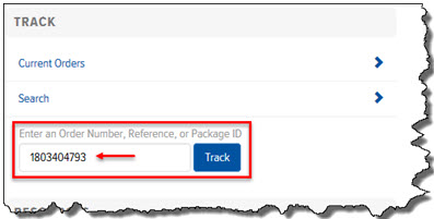 On the Home page, in the Track section, enter an Order Number, Reference Number, or Package ID, as shown: