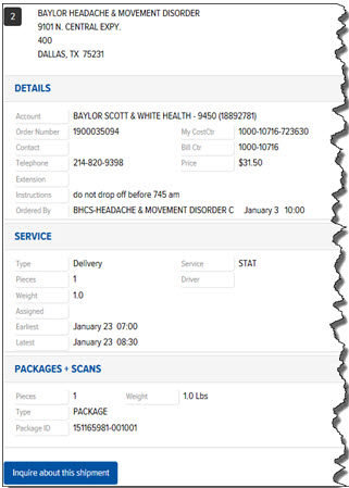 Note: The information displayed on the Additional Details page is the same information that displays on the Track > Order Details page. The Additional Details page includes a link to the Delivery Receipt (if applicable).