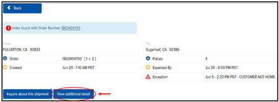 · On the Track Orders page, click View Additional Detail, as shown: