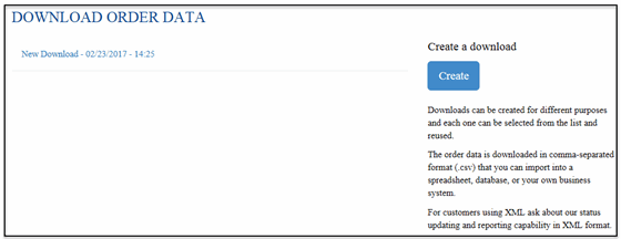The Download Order Data page appears, as shown: