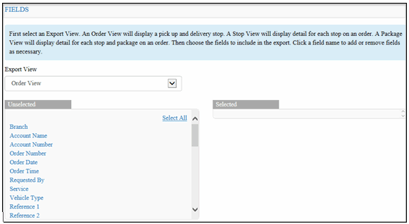 To un-select fields, in the Selected column, click the fields that you want to un-select. Or, click the Unselect All link.