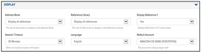 The settings in the Display section pertain to the display of information throughout the Final Mile Track application.