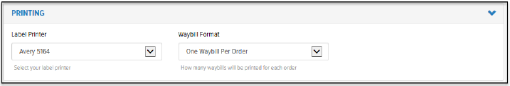 In the Waybill Format field, click the drop-down arrow to select how many waybills to print per order (One Waybill per Order or Multiple Waybills per Order).