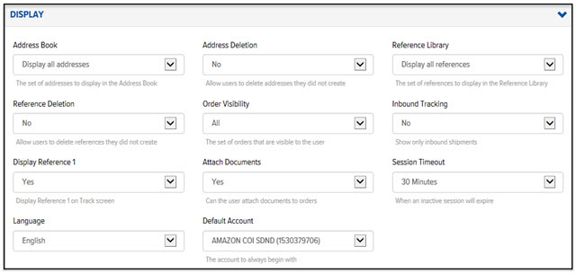 1. On the Users page, on the Settings tab, click Display. The Display section displays, as shown: